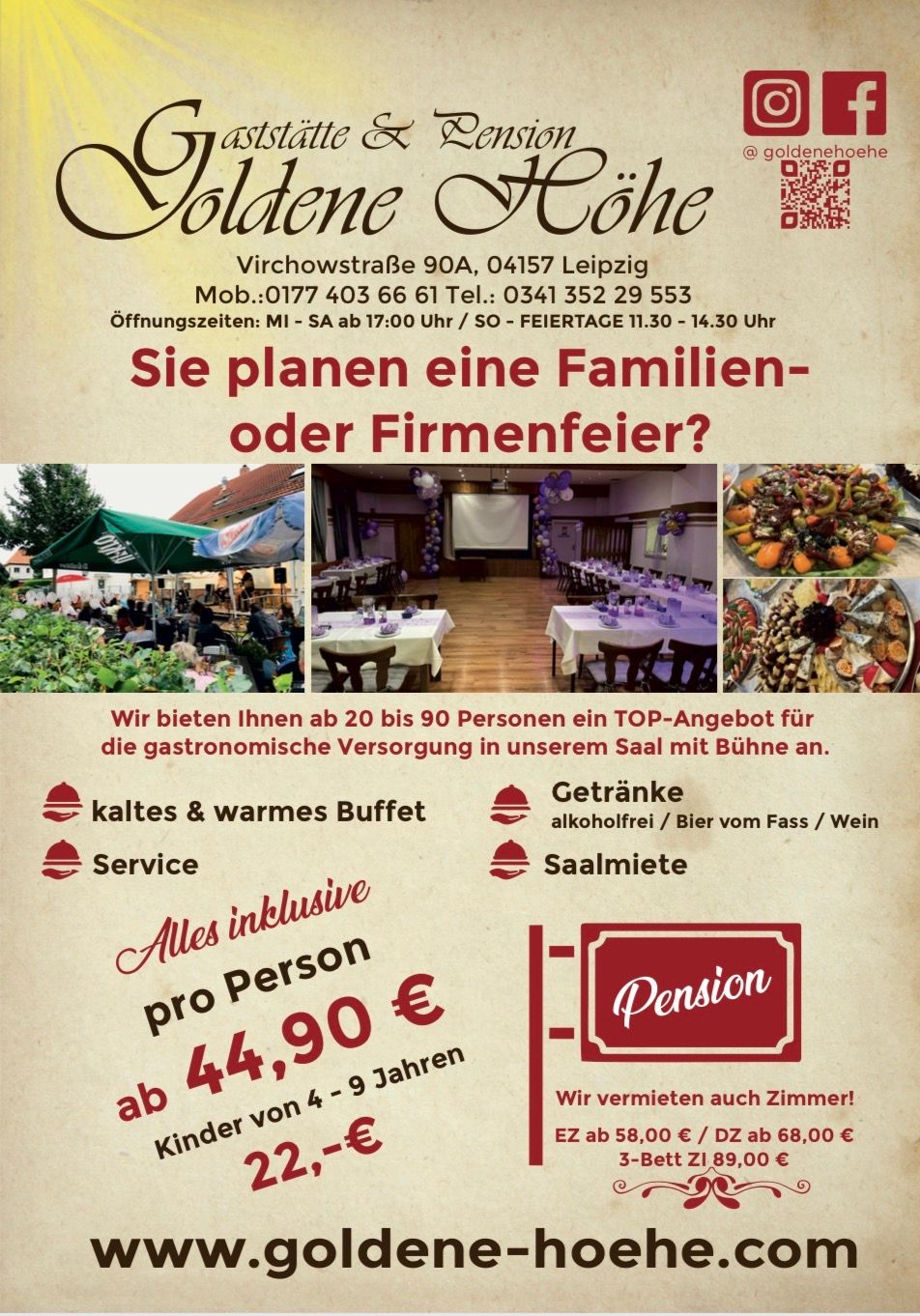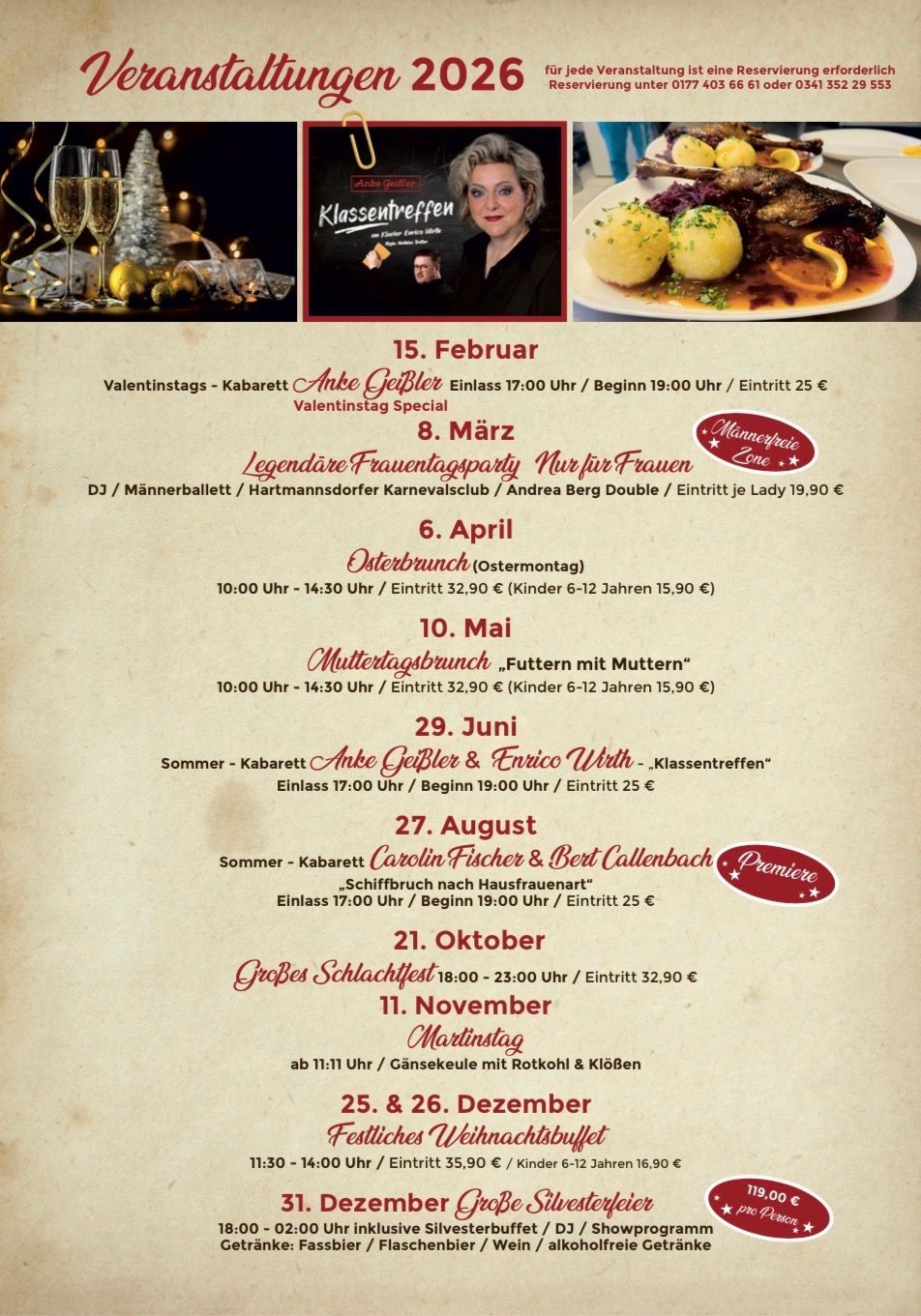 Wir freuen uns, Sie in unserem Restaurant mit den besten Spezialitäten der deutschen Küche verwöhnen zu dürfen. Wir bieten hausgemachte Sülze, Eisbein, Rinderroulade, Steak au four Bauernfrühstück, Schnitzel und andere Köstlichkeiten. Besuchen Sie uns!